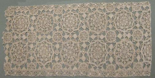 View Original: | Lace Panel, 16th century, Italy, Linen, needlepoint lace, punto in aria, Reticelli pattern, buttonhole stitch.JPG (2224x1128) | |||