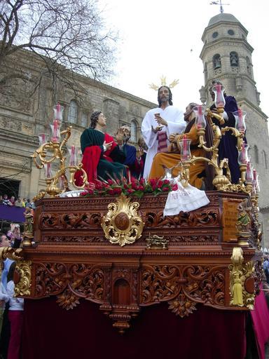 Keywords: Lacenabaezajaen.JPG rigth La Santa Cena en la Plaza de Sta María La Santa Cena en Baeza por Juampa Mola 2005-03-20 own assumed Jmolagar~commonswiki Holy Week in Baeza Sculptures of the Last Supper in Spain