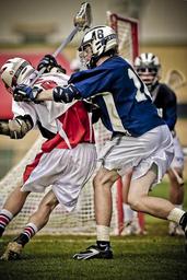 Keywords: lacrosse hitting player clash athletic compete competition stick athlete sport action goalie net ball attack motion lax outdoor match goal game