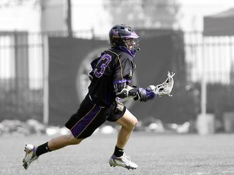 Keywords: lacrosse lax player lacrosse player running stick ball gut net competition field game uniform action teenager sport athlete outdoors action photo young athletic helmet activity