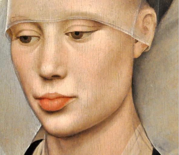 Keywords: Lady by Rogier van der Weyden (Washington) detail 01.jpg Artwork Creator Rogier van der Weyden Mld The composition is built from the geometric shapes that form the lines of the woman's veil neckline face and arms and by the fall of the light that illuminates her face and headdress The vivid contrasts of darkness and light enhance the almost unnatural beauty and Gothic elegance of the model La composición está formada por formas geométricas que modelan las líneas del velo el cuello el rostro y los brazos y por la caída de la luz que ilumina su faz y su peinado Es el único retrato de una mujer firmado por el propio van der Weyden si bien se conocen más retratos atribuidos a él o a su taller aunque no se conoce ni el nombre de la dama ni el título original de la obra По т ет состоит из геомет ических фигу кото ые фо ми уют вуаль вы езы платья лицо и уки модели а также свет кото ый освещает ее лицо и головной убо Конст аст темноты и света увеличивают почти неестественную к асоту модели добавляя ей готической элегантности ca 1460 Oil oak panel size cm 37 27 Institution National Gallery of Art http //www nga gov/content/ngaweb/Collection/art-object-page 51 html National Gallery of Art WGA link 25706 http //www wga hu/art/w/weyden/rogier/16portra/05lady jpg http //www wga hu/html/w/weyden/rogier/16portra/05lady html object history credit line accession number http //www flickr com/photos/menesje/5307329159/ <gallery> File Rogier van der Weyden - Portrait of a Lady - Google Art Project jpg High Resolution Google Art Project File Rogier van der Weyden 027 jpg high res but little detail File Rogier van der Weyden Portrait of A lady C1460 jpg low res lighter background </gallery> PD-old-100 DEFAULTSORT Portrait of a Lady by Rogier van der Weyden Washington Details of paintings by Rogier van der Weyden Portrait of a Lady by Rogier van der Weyden Washington |