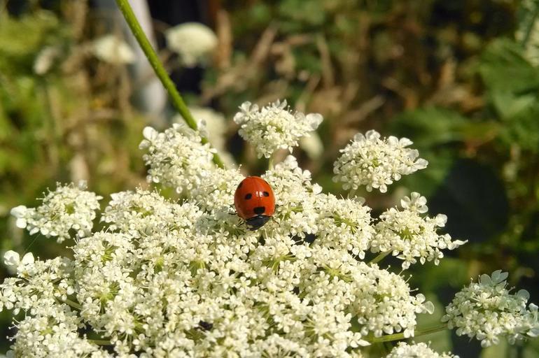 Keywords: ladybug flower insect outdoor red white nature green plant spring summer bug floral beetle