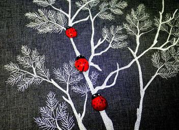 Keywords: ladybugs decoration texture textile small gray background red insects carpet structure artificial beetle bugs grey animals