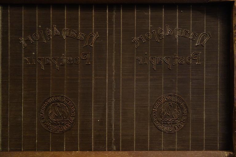 | Keywords: Laid mold and deckle, Holland - Robert C. Williams Paper Museum - DSC00445.JPG en Exhibit in the Robert C Williams Paper Museum Atlanta Georgia USA This work is old enough so that it is in the public domain Photography was permitted in the museum without restriction 2014-03-20 13 21 07 own Daderot PD-old-100 cc-zero Paper moulds in the Robert C Williams Paper Museum Uploaded with UploadWizard | ||||