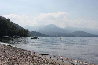 Keywords: lake bank mountains nature water beach stones italy landscape