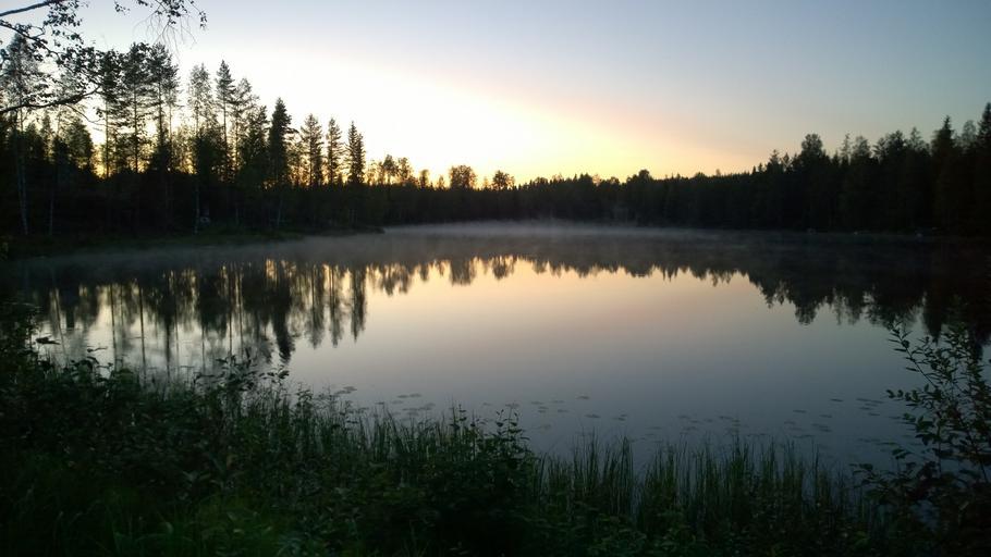 Keywords: lake calm reflection evening tranquil summer scenery mist idyllic nature water outdoor finland