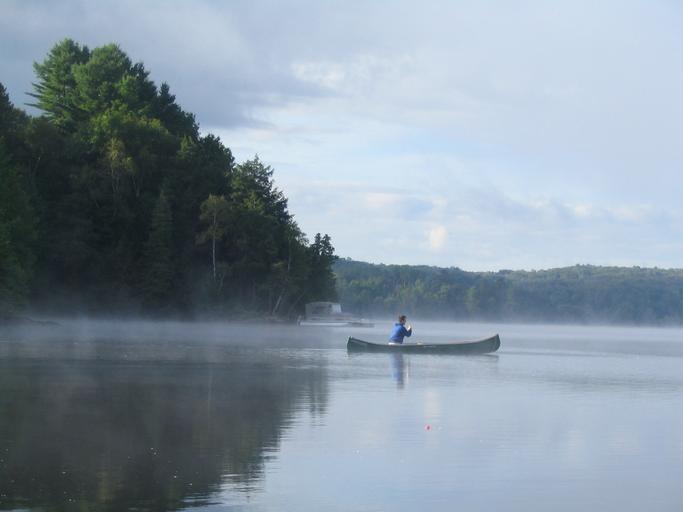 Keywords: lake canoe nature mist reflection calm morning haliburton ontario canada