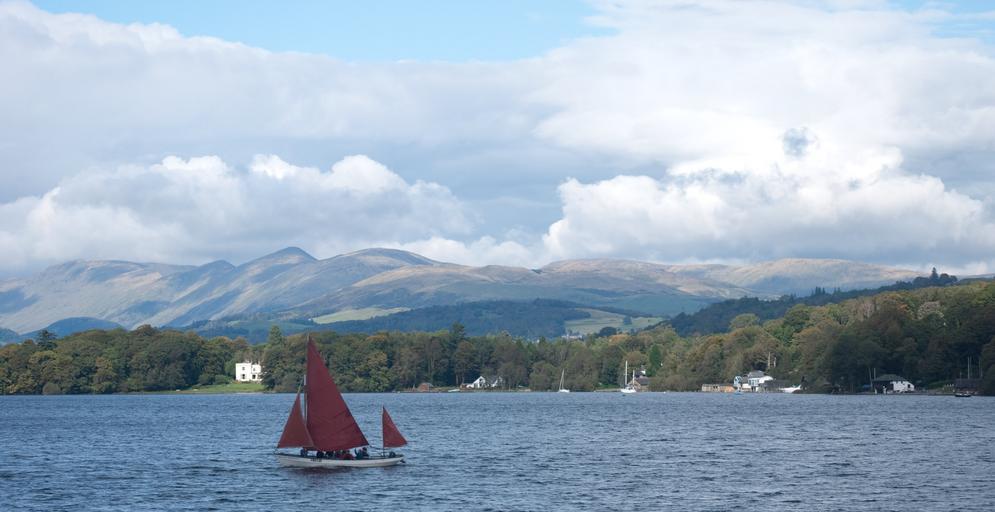 Keywords: lake district yacht sky landscape boat sail lake red canvas