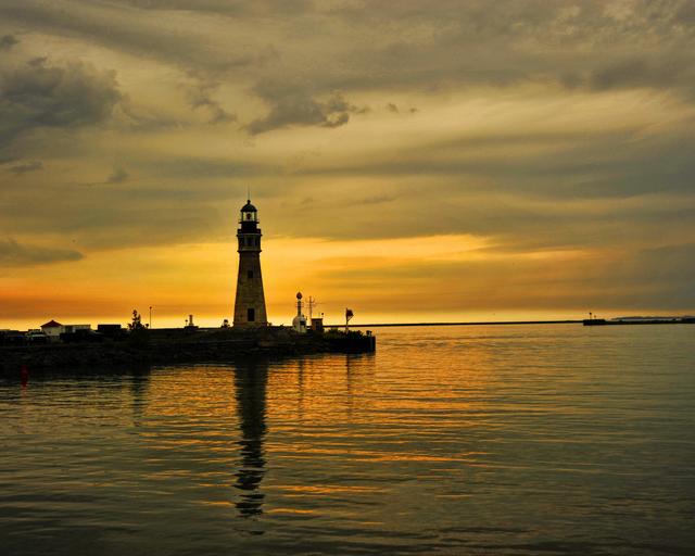 Keywords: lake erie lake water buffalo lighthouse sunset orange harbor scenic nautical shoreline coastline coast landscape nature