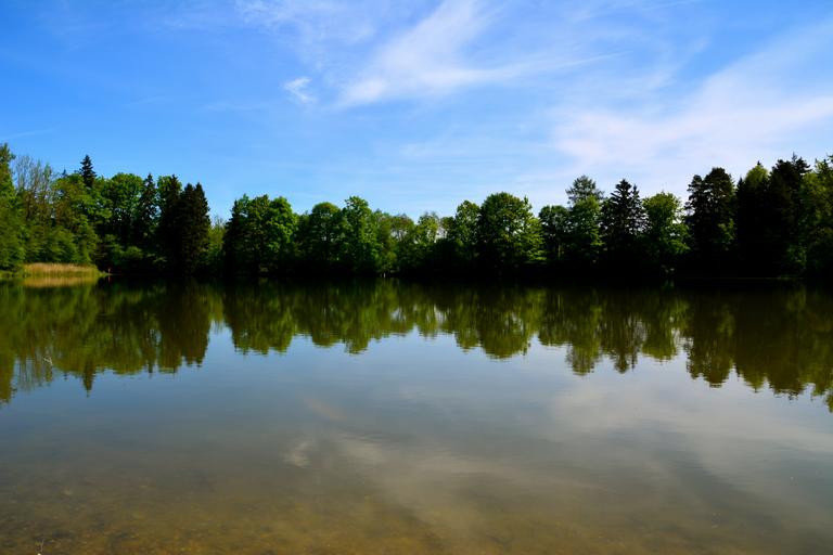 Keywords: lake forest nature landscape trees water pond leaves mirroring bank waters mirror image wave