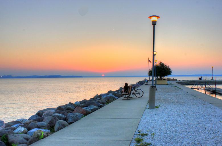 Keywords: lake girl sunset pier scenic colorful rocks landscape