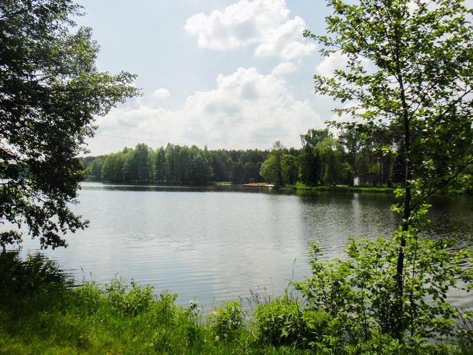 Keywords: lake grass tree nature landscape pond sky clouds view poland