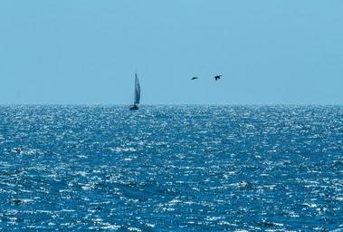 Keywords: lake horizon blue boot sky ship coast sea distant nature wide view water waters line sparkle overview sail sailing boat silhouette birds bird baltic sea rügen holiday relaxation landscape lake view