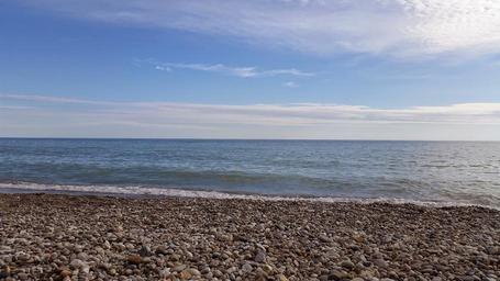 Keywords: lake michigan stony beach sky horizon