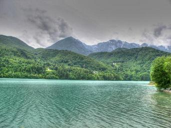Keywords: lake mountains water landscape scenery tranquil clouds