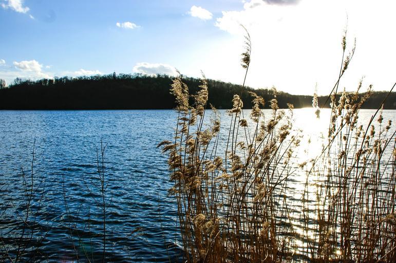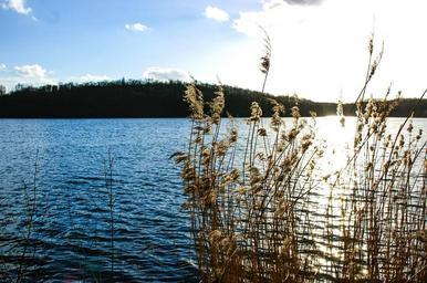 Keywords: lake nature landscape water waters island blue postcard reed plant sun distant clouds wave