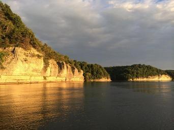 Keywords: lake oklahoma america fresh water day summer cliffs clouds reflection green gold