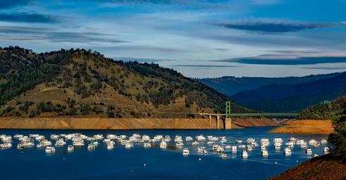 Keywords: lake oroville california ships boats landscape mountains scenic sky bridge houseboats leisure recreation panorama vacation holiday outdoors valley forest trees woods hdr yacht basin reservoir tourism