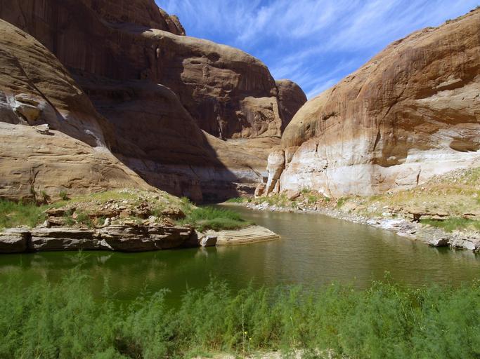 Keywords: high rock near rainbow bridge lake powell arizona usa page tourist attraction monument native sacred place landscape outdoor hot dry scenery nature desert water reservoir activity