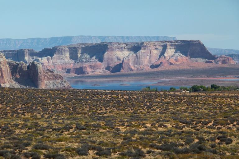 Keywords: lake powell arizona usa tourist attraction outdoor activities water sport boating swimming wind surfing recreation nature landscape red rocks clouds summer scenery natural natural water lake reservoir countryside