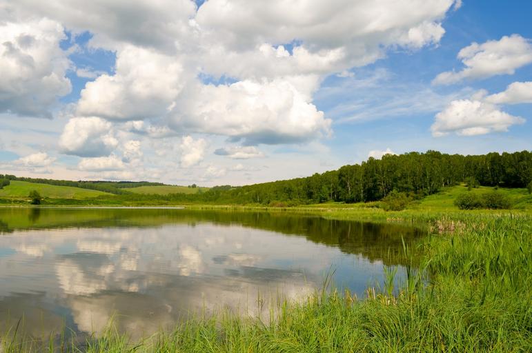 Keywords: lake sky clouds reflection walking travel vacation water reeds grass landscape nature summer green deserted forest