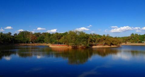 Keywords: lake sky water blue horizon coast coastline river reflection forest tranquil environment idyllic peaceful clouds scenery nature calm dramatic sadhankeri dharwad india vivid panorama panoramic