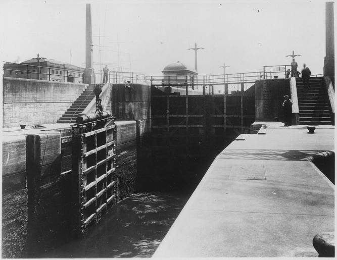 Keywords: Lake Washington Ship Canal, U.S. Government Locks, Seattle, Washington.Removing lower guard rail, small lock, showing... - NARA - 298863.tif Scope and content The US Army Corps of Engineers extensively photographed many of the Civil Works project and river and harbor improvement that they were involved with The Lake Washington Ship Canal and the Hiram Chittenden Locks were built to allow passage between fresh water Lake Union and salt water Puget Sound General notes 298863 Local identifier Department of Defense Department of the Army Office of the Chief of Engineers North Pacific Division Seattle District 09/18/1947 - 06/14/1979 NARA's Pacific Alaska Region Seattle NRIAS 6125 Sand Point Way NE Seattle WA 98115-7999 1936-06-19 Record group Record Group 77 Records of the Office of the Chief of Engineers 1789 - 1999 Record group ARC 406 Civil Works Project Photographs compiled ca 1900 - ca 1977 Series ARC 580875 File unit File unit ARC Variant control numbers NAIL Control Number NRIS-77-SEAPHOTOS-P3 yes Other versions <gallery> File Lake_Washington_Ship_Canal _U S _Government_Locks _Seattle _Washington Removing_lower_guard_rail _small_lock _showing _-_NARA_-_298863 tif tif File Lake_Washington_Ship_Canal _U S _Government_Locks _Seattle _Washington Removing_lower_guard_rail _small_lock _showing _-_NARA_-_298863 jpg jpg </gallery> NARA-cooperation PD-USGov NARA TIF images with categorized JPGs Hiram M Chittenden Locks 1936 in Seattle |