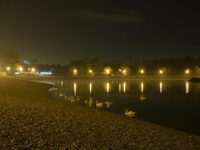 Keywords: lake water beach sand shore night evening foggy lights reflection scenic horizon coast dark sea seascape tranquil peaceful calm