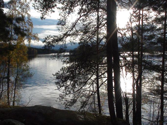 Keywords: lake water finland peace reflections trees woods forest
