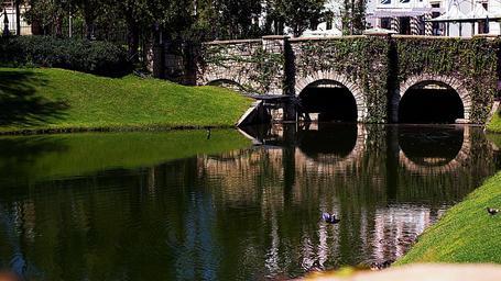 Keywords: lake water nature grass bridge medieval