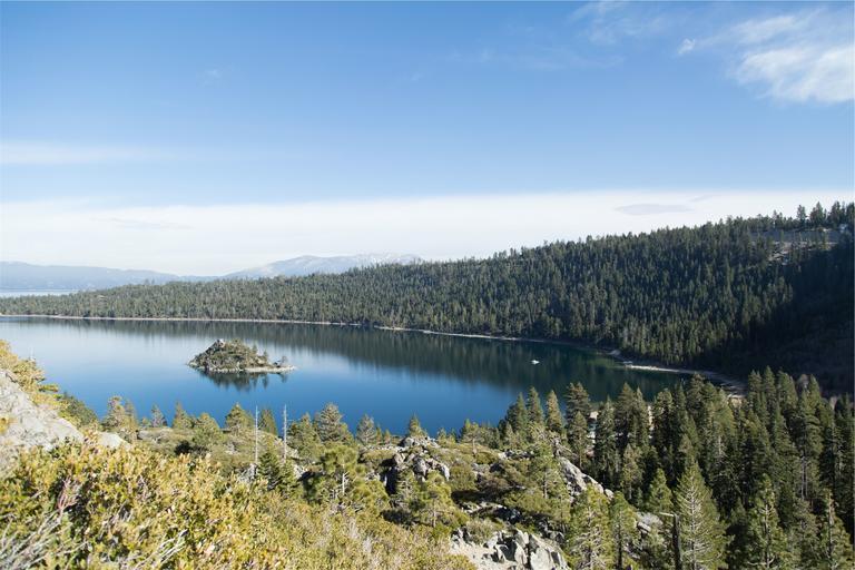 Keywords: lake water trees mountains nature landscape blue sky sunny sunshine