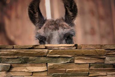 Keywords: lama lama head camel eyes ears attention brown wall curious wildlife photography animal portrait mammals paarhufer close