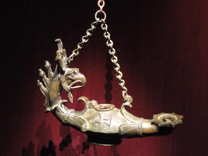 | Keywords: Lamp with Griffin-Head Handle, 300s-400s AD, Early Byzantine, perhaps Syria, bronze - Cleveland Museum of Art - DSC08402.JPG en Exhibit in the Cleveland Museum of Art Cleveland Ohio USA Photography was permitted in the museum without restriction This artwork is old enough so that it is in the public domain Daderot 2012-09-07 13 23 45 Daderot cc0 cc0 Byzantine art in the Cleveland Museum of Art | ||||