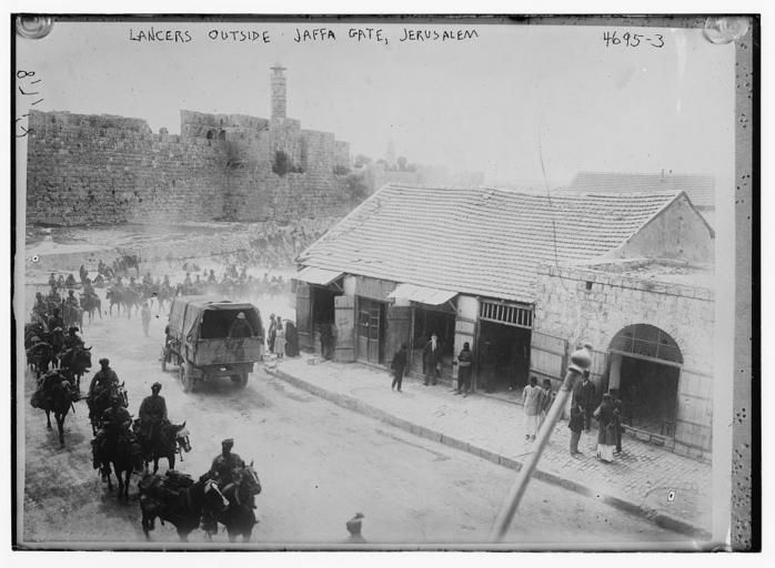 | Keywords: Lancers outside Jaffa Gate, Jerusalem (LOC) (28935723005).jpg  Bain News Service publisher Lancers outside Jaffa Gate Jerusalem between ca 1915 and ca 1920 1 negative glass ; 5 x 7 in or smaller Notes Title from unverified data provided by the Bain News Service on the negatives or caption cards Forms part of George Grantham Bain Collection Library of Congress Subjects Jerusalem Format Glass negatives Rights Info No known restrictions on publication Repository Library of Congress Prints and Photographs Division Washington D C 20540 USA http //hdl loc gov/loc pnp/pp print hdl loc gov/loc pnp/pp print General information about the Bain Collection is available at http //hdl loc gov/loc pnp/pp ggbain hdl loc gov/loc pnp/pp ggbain Higher resolution image is available Persistent URL http //hdl loc gov/loc pnp/ggbain 27485 hdl loc gov/loc pnp/ggbain 27485 Call Number LC-B2- 4695-3 https //www flickr com/photos/library_of_congress/28935723005/ Lancers outside Jaffa Gate Jerusalem LOC LOC-image ggbain 27485 https //www flickr com/people/8623220 N02 The Library of Congress http //www loc gov/rr/print/195_copr html noknown The Library of Congress Flickr Commons PD-Bain The Library of Congress https //flickr com/photos/8623220 N02/28935723005 2016-09-08 04 52 43 pd Uncategorized 2016 December 20 |