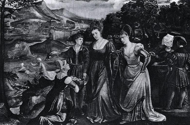 | Keywords: Lanciano Finding of Moses.jpg The Finding of Moses Znalezienie Mojżesza Polidoro da Lanciano s 1530 oil canvas cm 105 5 155 4 Catalogue of paintings removed from Poland by the German occupation authorities during the years 1939-1945 1 Foreign paintings / comp Władysław Tomkiewicz ; Ministry of Culture and Art Warsaw 1950 Editor Ministry of Culture and Art See also http //kolekcje mkidn gov pl/ Department of National Heritage Wartime losses an official webpage of Polish Ministry of Culture Art and National Heritage PD-Art PD-old-100 Polidoro de Renzi Polidoro da Lanciano 16th-century foreign paintings lost in Poland during World War II Paintings of the Finding of Moses |