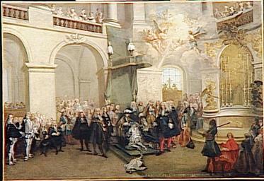 | Keywords: Lancret - La remise de l'Ordre du-Saint-Esprit.jpg Artwork Creator Nicolas Lancret 1724 Oil on canvas cm 81 5 56 Institution Louvre esquisse ; Date sujet représenté 3 juin 1724 000PE001659 other versions PD-old-100 Nicolas Lancret Remise de l'Ordre du-Saint-Esprit French paintings in the Louvre - Room 37 1724 paintings in France 1724 events 18th-century history paintings 18th-century oil on canvas paintings in France 18th-century paintings of building interiors Events in Versailles France in the 1720s Order of the Holy Spirit Oil paintings of buildings and structures Paintings of interiors of palaces Versailles Interior of the Palace of Versailles in art Paintings Paintings of church interiors Chapel of the Palace of Versailles Royal thrones Versailles in the 18th century Vues d ™intérieures du Château de Versailles “époque de Louis XV 1720s paintings in the Louvre PD-old files by User Jimmy from fr wikipedia |
