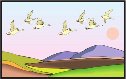 Keywords: land birds flying sunset mountains geese fly landing