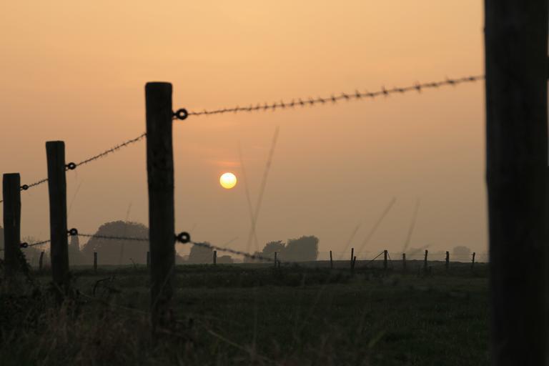 Keywords: land fence sunset barbed wire idyll landscape on the land