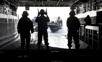 | Keywords: Landing craft air cushion 130313-N-WX580-081.jpg en Boatswain's mates direct an landing craft air cushion into the well deck of the amphibious transport dock ship USS San Antonio LPD 17 San Antonio is deployed as part of the Kearsarge Amphibious Ready Group with embarked Marines from the 26th Marine Expeditionary Unit 26th MEU supporting maritime security operations and theater security cooperation efforts in the U S 5th and 6th Fleet areas of responsibility U S Navy photo by Mass Communication Specialist 3rd Class Lacordrick Wilson/Released 2013-03-13 Petty Officer 3rd Class Lacordrick Wilson https //www dvidshub net/image/894171 130313-N-WX580-081 2013-03-25 22 44 ATLANTIC OCEAN PD-USGov-Military-Navy 26th Marine Expeditionary Unit USS San Antonio LPD-17 Images from DoD uploaded by Fæ |