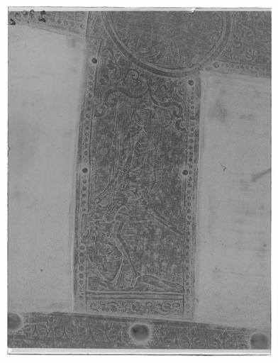 Keywords: Ländpansar till hästrustning, troligen tillhörigt Johan III, 1500-tal - Livrustkammaren - 79460-negative.tif LSH artwork sv Bestående av 45 plåtar i varierande storlek sammanfogade med nitar och på insidan kantband av sämskat läder Längs kanterna rader av nitar med kullriga mässingsskallar Formen välvd och formad efter hästens kropp med bredare bakparti Varje sida delas in i 14 rektagulära fält klädda med mörkrött siden Kanter och flätverk med på den blanka utsidan ett heltäckande etsat mönster iform av nertill jaktscener och på banden helfigurbilder på män i olika typer av rustning varav några med sköldar Mellan figurbilderna runda medaljonger med byster av män och kvinnor i antikiserande kläder Pansarets övre del består av ett separat långsmalt stycke med framtill dekor av tätt rankverk och baktill format till en liggande hundliknande drake med lång ringlande svans uppspärrat gap och uppåtpekande öron Kroppen täckt av etsade lövliknade fjäll djurets längd 720 mm Insidan brunsvart och ojämn med tyliga slagmärken Längs nedre kanterna 20 mm breda band av brungult sämskat läder original caption century 16 velvet Färg mörkt röd material sammet - brass - steel - leather Färg brungul material läder g 8600 size mm 890 650 340 LRK Johan III av Sverige Tre Konungar på Åbo slott 1993 Björneborg - Johans stad Satakunta Museum Björneborg/Pori 2008 Trofast - hov och tass i kunglig tjänst 2010-2011 Livrustkammaren Trogna vänner - Kungliga hästar och hundar 2011-2012 Museiverket/Finlands nationalmuseum place of origin original filename LN_E02915 59504 inventory number LRK 22862 79460 CC0 Ländpansar till hästrustning troligen tillhörigt Johan III 1500-tal - Livrustkammaren - 79460 tif <gallery caption Different images of same object > File Ländpansar till hästrustning troligen tillhörigt Johan III 1500-tal - Livrustkammaren - 36659 tif File Ländpansar till hästrustning har troligen tillhört Johan III 1500-tal - Livrustkammaren - 10975 tif File Ländpansar till hästrustning troligen tillhörigt Johan III 1500-tal - Livrustkammaren - 2415 tif File Ländpansar till hästrustning troligen tillhörigt Johan III 1500-tal - Livrustkammaren - 70895 tif </gallery> <gallery caption Related objects > File Manpansar möjligen tillhörigt Johan III 1500-talets mitt - Livrustkammaren - 19537 tif LRK 22860 File Manpansar möjligen tillhörigt Johan III 1500-talets mitt - Livrustkammaren - 36657 tif LRK 22860 File Manpansar möjligen tillhörigt Johan III 1500-talets mitt - Livrustkammaren - 62337 tif LRK 22860 File Bogpansar till hästrusning troligen tillhörigt Johan III 1500-tal - Livrustkammaren - 35526 tif LRK 22861 File Manpansar möjligen tillhörigt Johan III 1500-talets mitt - Livrustkammaren - 70899 tif LRK 22860 File Bogpansar till hästrusning troligen tillhörigt Johan III 1500-tal - Livrustkammaren - 44085 tif LRK 22861 File Bogpansar till hästrusning troligen tillhörigt Johan III 1500-tal - Livrustkammaren - 79454 tif LRK 22861 File Manpansar möjligen tillhörigt Johan III 1500-talets mitt - Livrustkammaren - 79458 tif LRK 22860 File Manpansar möjligen tillhörigt Johan III 1500-talets mitt - Livrustkammaren - 53776 tif LRK 22860 File Manpansar möjligen tillhörigt Johan III 1500-talets mitt - Livrustkammaren - 45215 tif LRK 22860 File Manpansar möjligen tillhörigt Johan III 1500-talets mitt - Livrustkammaren - 10973 tif LRK 22860 File Manpansar möjligen tillhörigt Johan III 1500-talets mitt - Livrustkammaren - 28096 tif LRK 22860 File Utställningsbild sadlar hästrustningar mm - Livrustkammaren - 77173 tif LRK 22861 File Manpansar möjligen tillhörigt Johan III 1500-talets mitt - Livrustkammaren - 2413 tif LRK 22860 File Manpansar möjligen tillhörigt Johan III 1500-talets mitt - Livrustkammaren - 35519 tif LRK 22860 </gallery> |