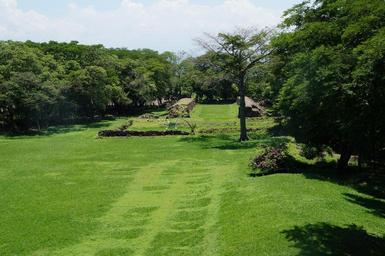 Keywords: landscape archeology ballgame culture pipil nature structures trees grass