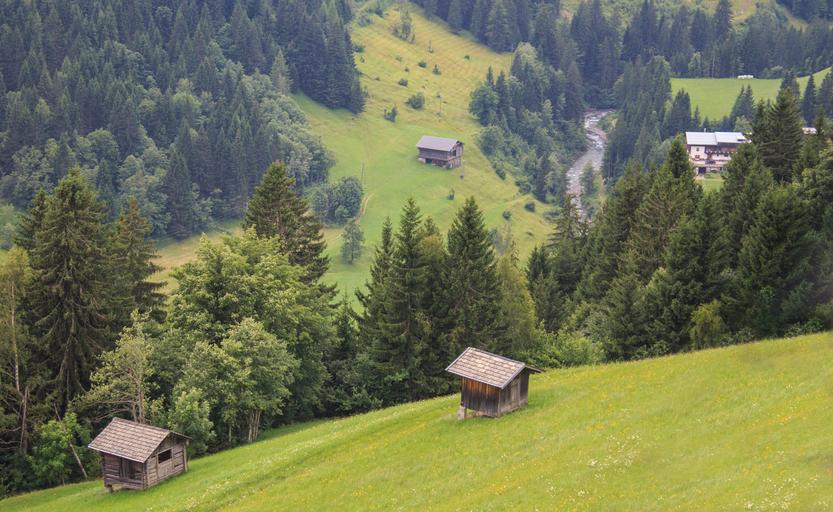 Keywords: landscape bauer agriculture field nature arable scenic summer mood hut heuhütte hay river carinthia austria rural forest alpine mountains idyllic trees green lesachtal meadow hill idyll mountain meadow bach recovery outdoor harmony in the green |