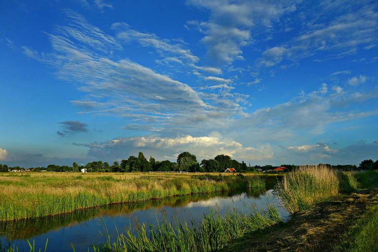 Keywords: landscape dutch landscape polder meadow waterway countryside rural sky clouds blue sky clouds