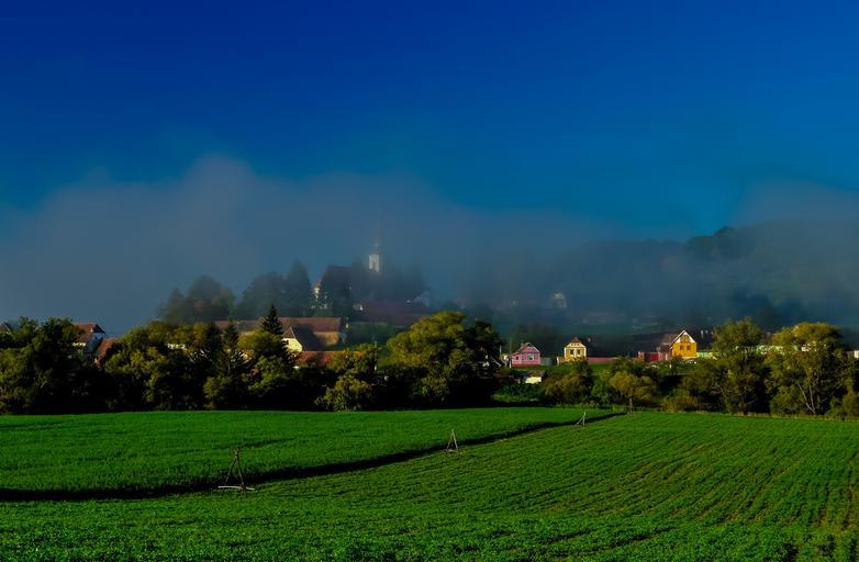Keywords: landscape fog morning sunshine mist forest light sunrise misty outdoor beautiful sky blue mountain foggy rural countryside