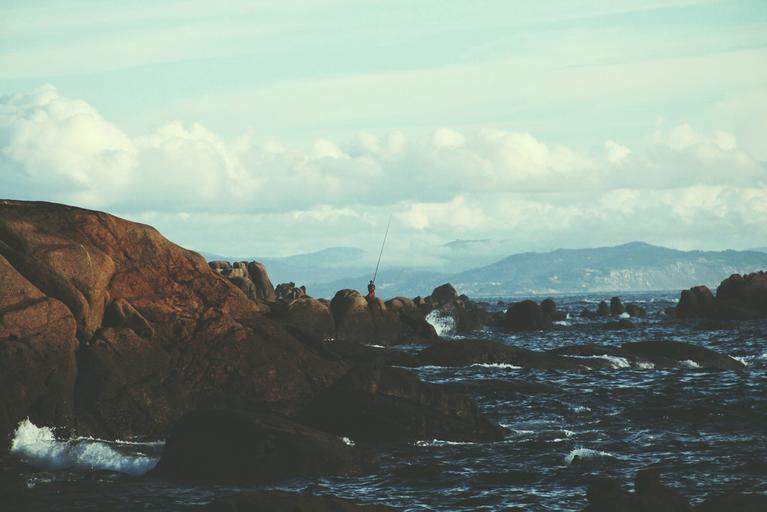 Keywords: landscape horizontal sea ocean natural nature cloudy clouds blue land nature landscape water outdoor scenery scenic fishing fisherman fisher mountain rock travel environment sky beautiful landscape