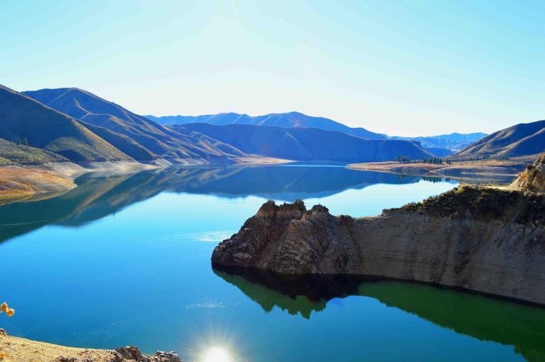 Keywords: landscape lake blue water mountain rocks outlet adventure mountains reservoir beautiful scenery nature water reservoir reflections beauty idaho boise