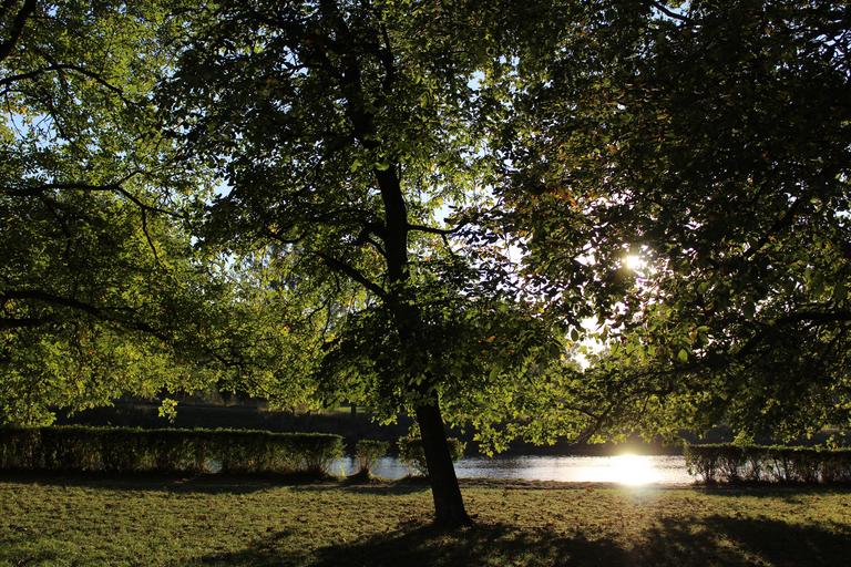 Keywords: landscape morning trees alley nature autumn deciduous tree parking