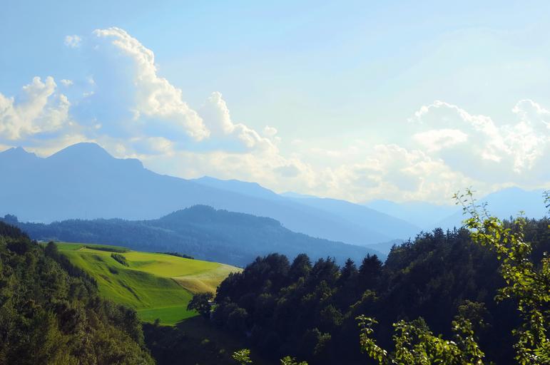 Keywords: landscape mountains hill clouds green sky valley forests reported