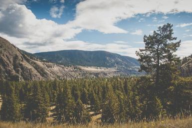 Keywords: landscape mountains hills valleys fields trees forest grass nature sky clouds sunny