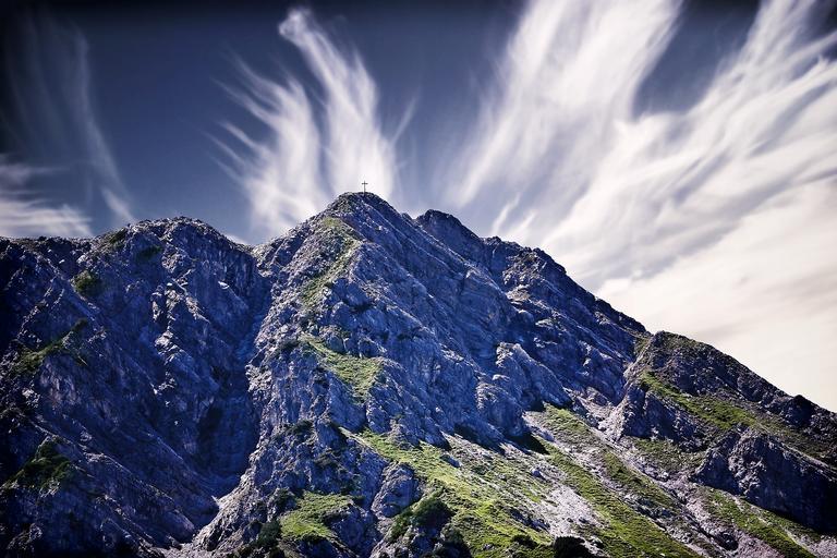 Keywords: landscape mountains mountain peaks outlook sky clouds summit cross nature